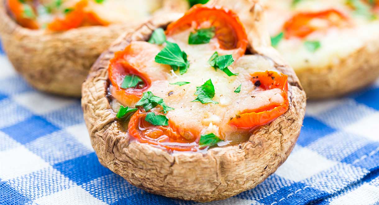 Stuffed tomato and cheese mushrooms